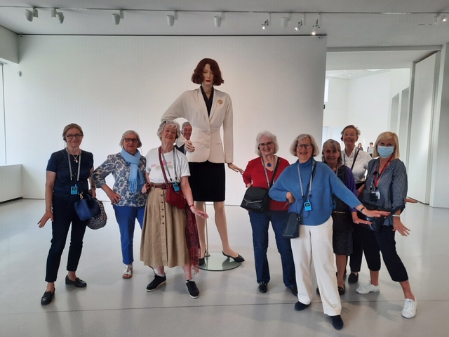 Vår uppskattade guide, Danielle Dorée-Petit, visade oss runt i det nyrenoverade börshuset, som av den japanske arkitekten Tadao Ando anpassats till sin nya funktion som museum för modern konst. Den centrala delen med en jättelik fönsterklädd kupol och takmålningar har behållits, men i övrigt har man skapat nya utställningsytor på 6 800 m2. Den yttre arkitekturen har inte förändrats. Förutom den intressanta arkitekturen fick vi se en utställning med effektfulla skulpturer av den amerikanske konstnären Charles Ray. Danielle berättade som alltid engagerat och livfullt!