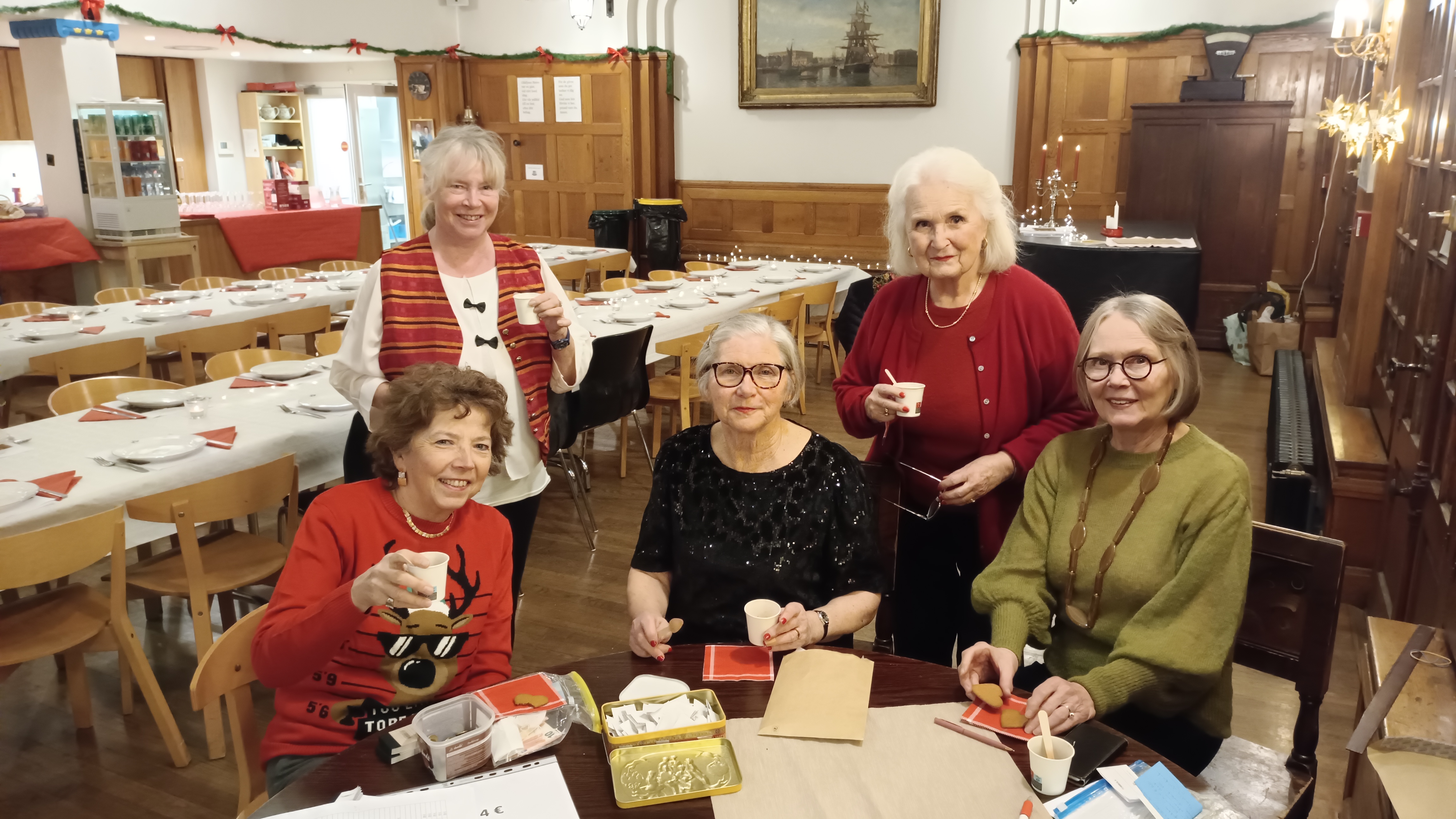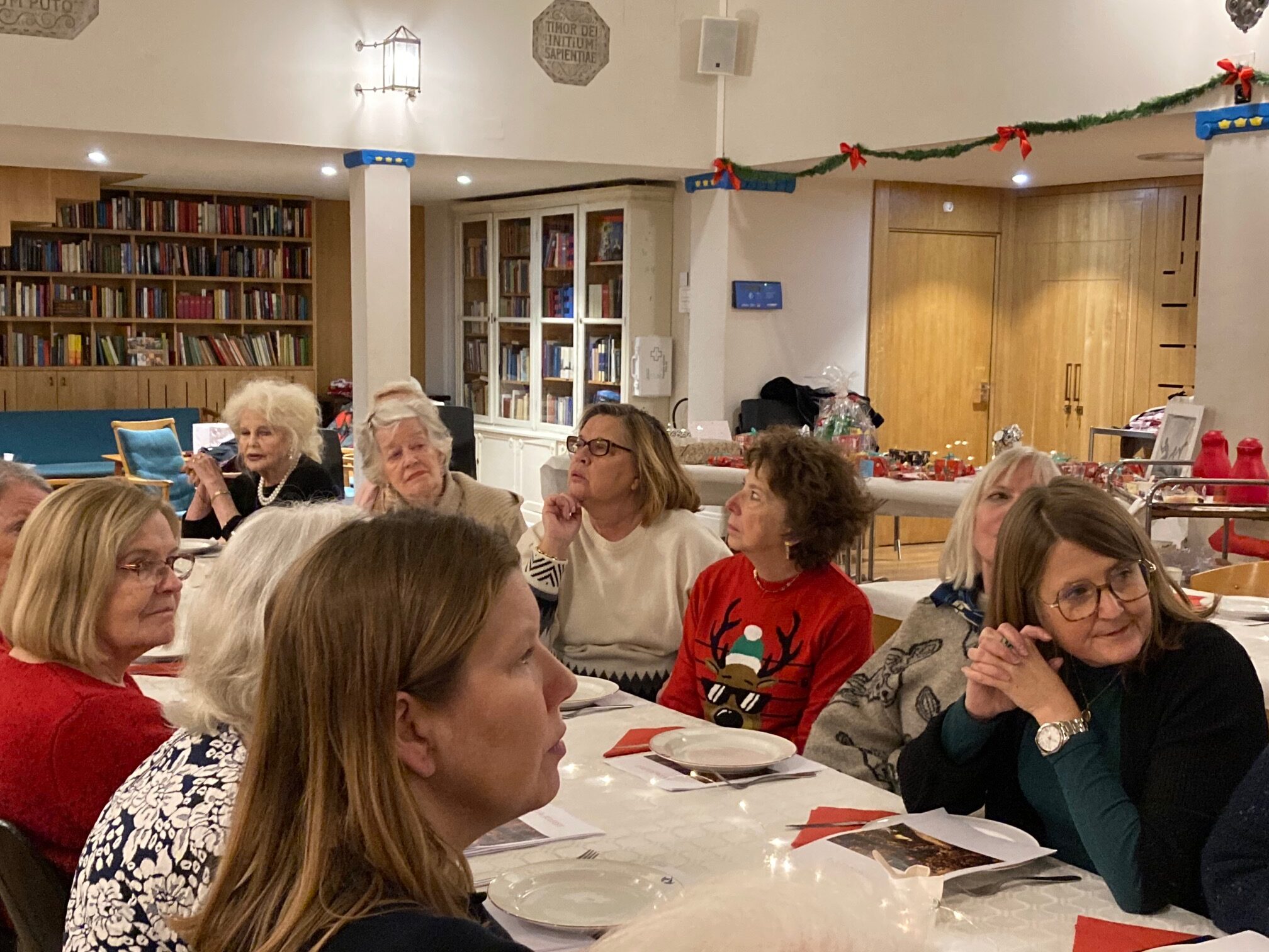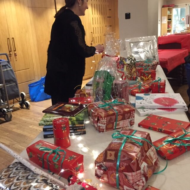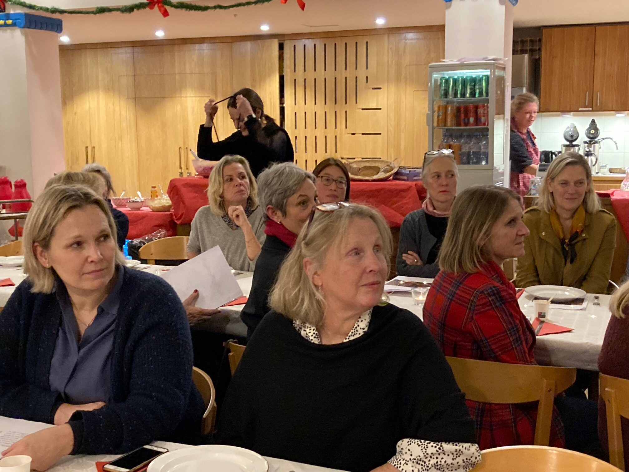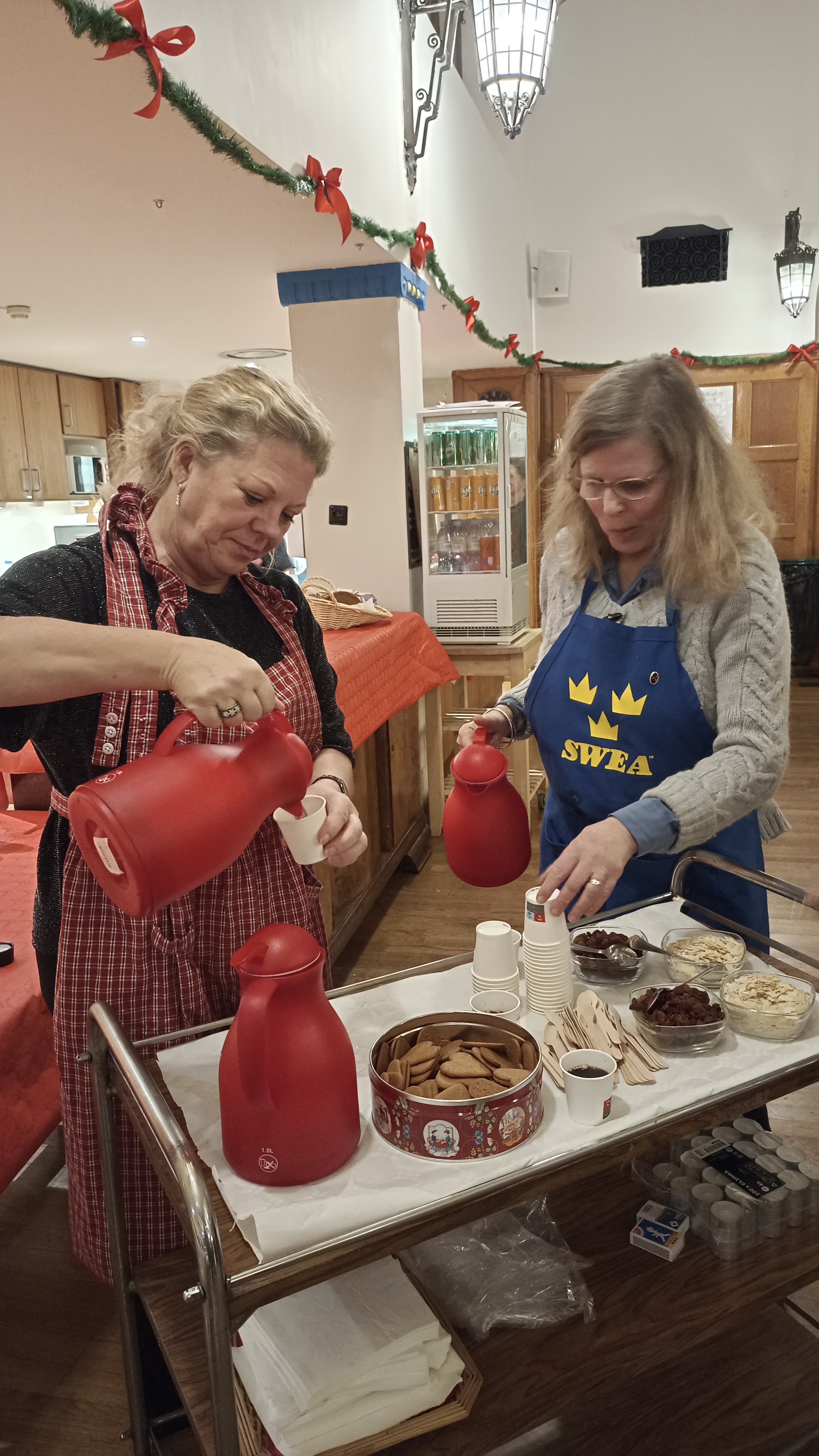 Det var ett 30-tal glada Sweor som samlades i Svenska kyrkans samlingssal för att umgås och ta del av den härliga julbuffén som Festkommittén hade tillagat.  Ett lotteri var som vanligt organiserat och många Sweor fick fina vinster att ta med sig hem.