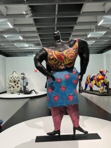 Den här utställningen var vi mycket nyfikna på, speciellt några av oss som i slutet av 60-talet var på Moderna Museet i Stockholm och på mycket nära håll besökte Niki de Saint Phalles monumentala skulptur ”Hon – en katedral” – 25 m lång, 10 m bred och 6 m hög – både ut- och invändigt! En konstinstallation som väckte stor uppmärksamhet då.