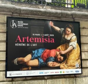 Artemisia Gentileschi, född i Rom 1593 (död i Neapel c:a 1655), var en av de få kvinnliga konstnärerna på 1600-talet och vi har nu chansen att se hennes verk på Musée Jacquemart André. Artemisia var en intelligent och frigjord kvinna. Hennes verk återspeglar ett häftigt temperament och ett starkt självförtroende, långt ifrån dåtidens kvinnliga ideal.