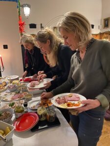 En hejdundrande fest med över 40 sweor som njöt av den goda glöggen, det traditionella julbordet och bordet – egentligen flygeln – med jullotteriets alla spännande vinster!