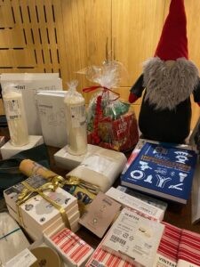 av fina vinster …. julsånger som klingade högt i Kyrkans församlingssal… och en Hej-tomtegubbar-
