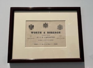 Samarbetet med svenske affärspartnern Otto Bobergh finns även bevarat i form av vackra grafiska fakturor och visitkort, Worth & Bobergh, 7, rue de la Paix.